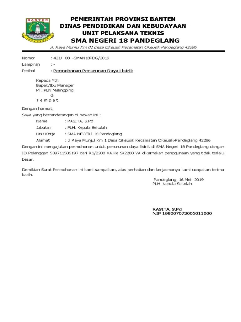 Surat keterangan rt dan rw atau lurah setempat (khusus untuk turun daya). Itulah contoh surat permohonan penurunan daya listrik yang dapat admin kumpulkan. Pelanggan hanya perlu membuka situs plncoid yang bi. Itulah yang dapat kami bagikan terkait contoh surat permohonan penurunan daya listrik pln. Contoh surat permohonan penurunan daya listrik pln.